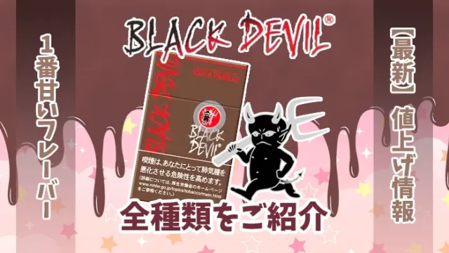 煙草・電子タバコ・CBD 【2025年値上げ】ブラックデビル全19種類の値段を甘い順に解説 2024年7月30日 ディンくん https://stg.discka.com/wp-content/uploads/2023/04/DISCKA_logo_color.webp DISCKA(ディスカ) ブラックデビルといえばお菓子のように甘いフレーバーが特徴的なタバコ銘柄ですが、どの銘柄が最も甘い味なのかを知りたい方も多いのではないでしょう …