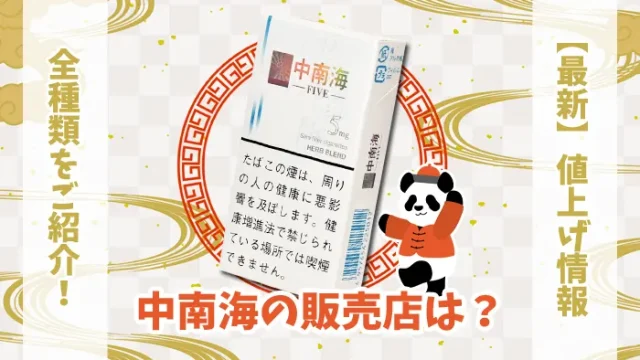 煙草・電子タバコ・CBD 【2025年値上げ】中南海のタバコ全11種類はどこで売ってる? 2024年7月23日 ディンくん https://stg.discka.com/wp-content/uploads/2023/04/DISCKA_logo_color.webp DISCKA(ディスカ) 世界で唯一の「漢方タバコ」として知られている中南海は、どこで売ってるのか気になる方も多いと思います。 結論から言うと、ドンキホーテ・コンビ …